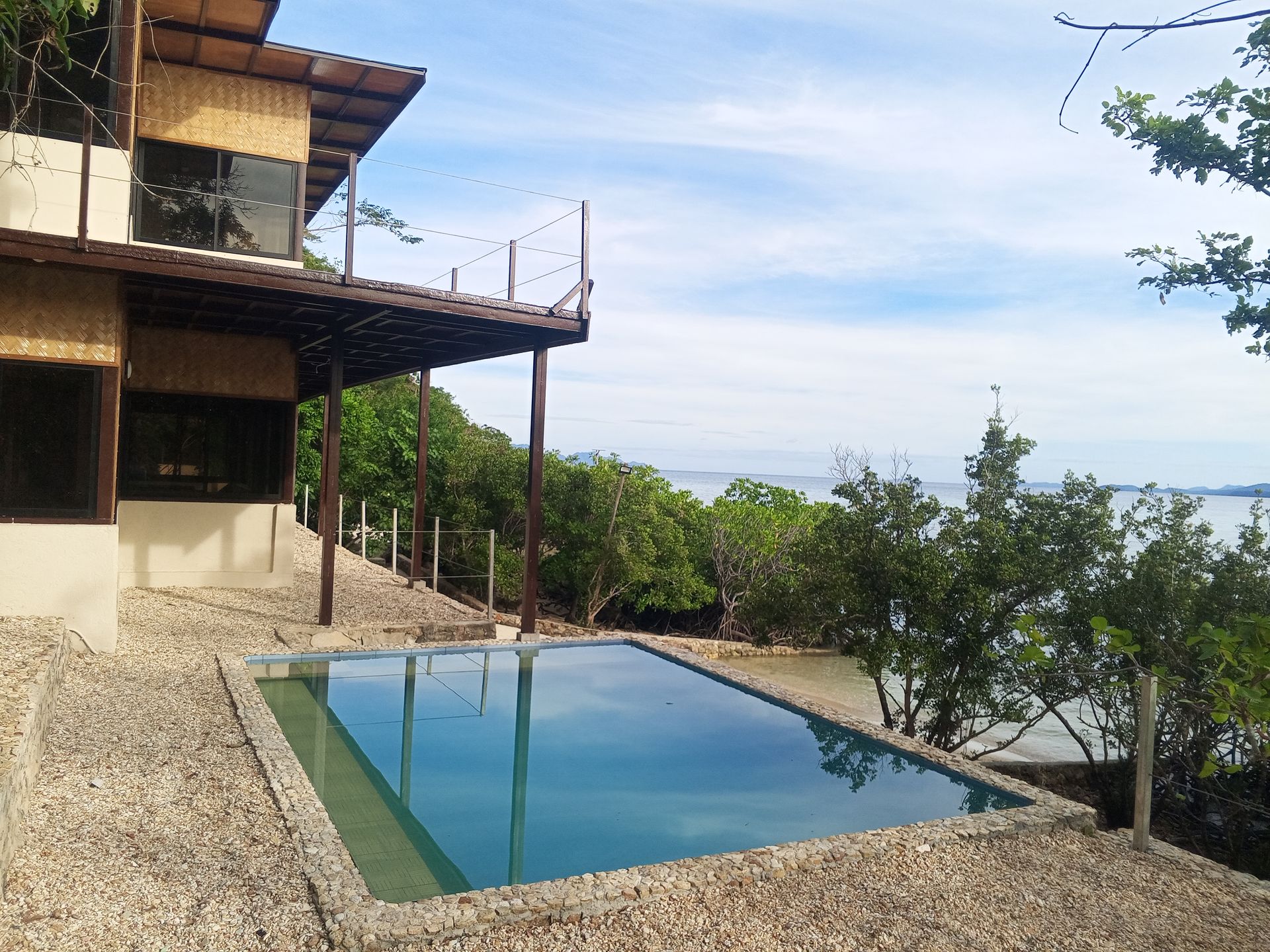 Our new 6 bedroom beachhouse finished in November 2025 has a private beach and pool, enormous verandas, including shaded areas, and a view out to islands and reefs and sunsets. With 10 queen beds, 2 sofa beds, 6 ensuite bathrooms, and a large open-plan living room/kitchen/dining room, the house is meant for large groups up to 28 guests. Great snorkeling and kayaking for miles in both directions, with no other development around our resort. Wifi is Starlink clocked at 239mbps, and the smart tv has Netflix and Prime Video. We offer meals or you can do your own cooking. We also offer island hopping and are a PADI Dive Resort for scuba diving.